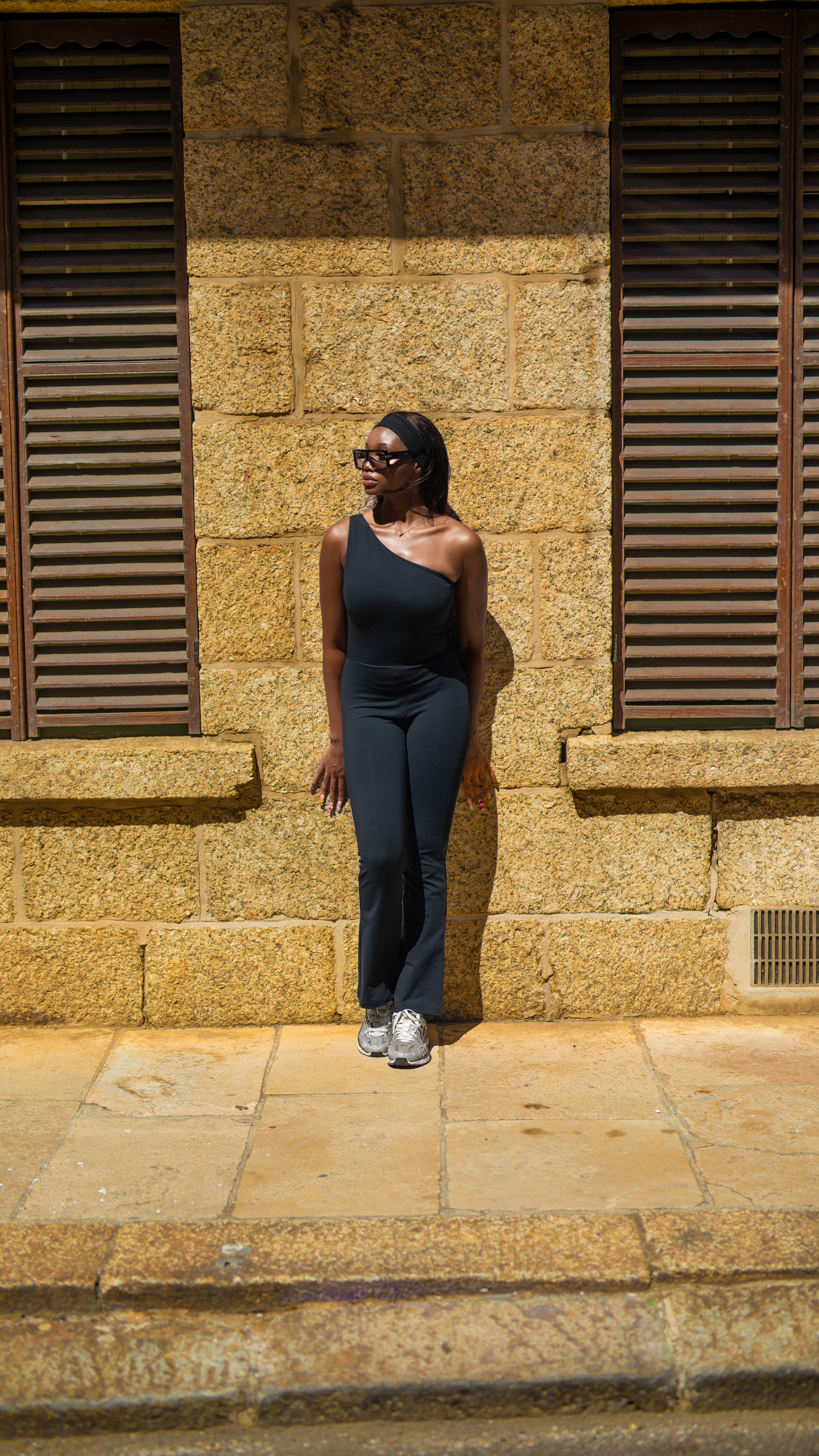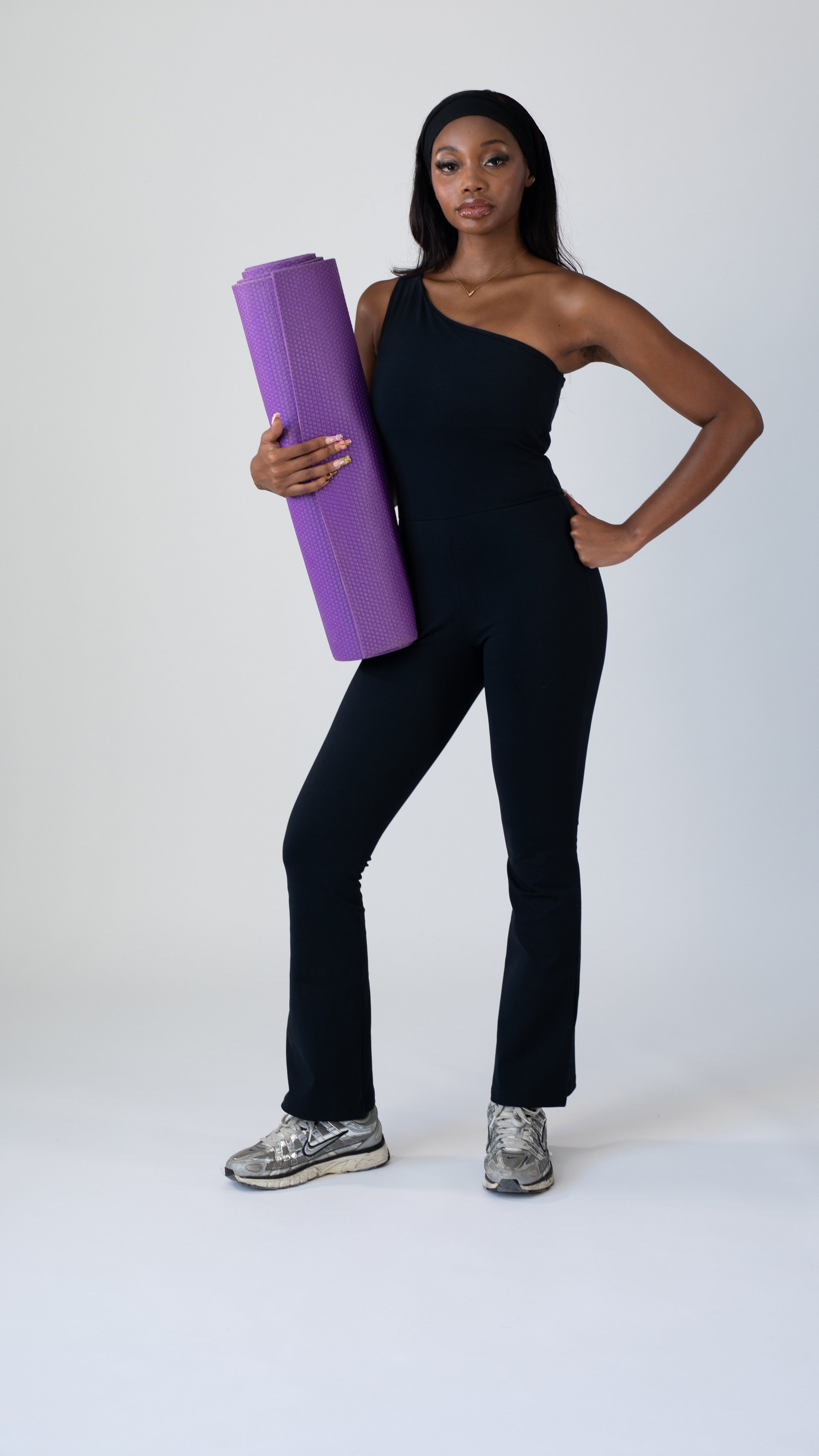 This jumpsuit was designed to move with you, featuring breathable fabric and a fluid cut that supports yoga, pilates, or any flow practice. Pair it with minimal slip-on sneakers or slides for an easy, modern workout look.
