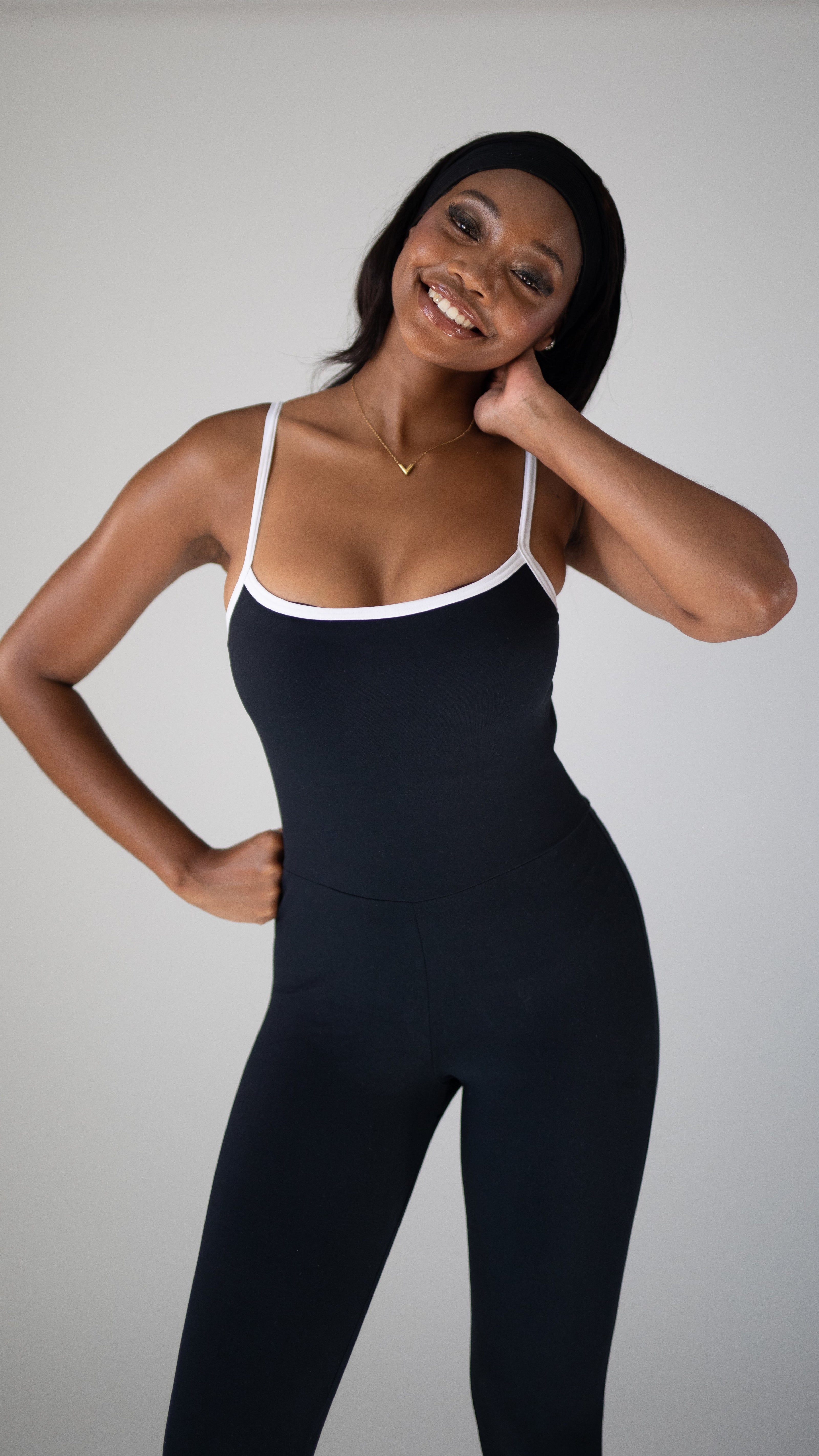 “This jumpsuit is all about elegance and simplicity. Classic jewellery works beautifully, but I also love layering with colourful beads for a fun, modern twist.” —Arielle Robins