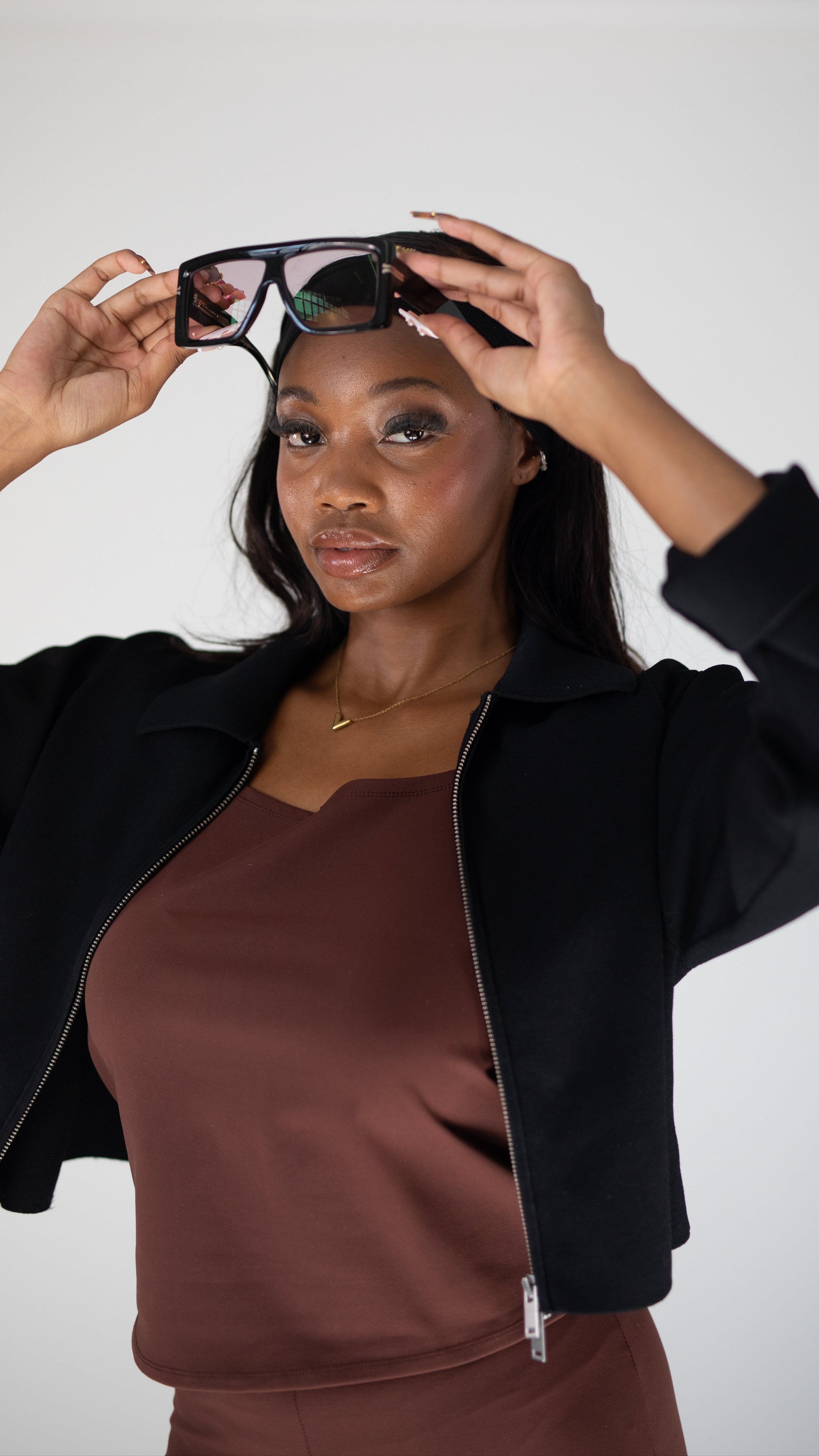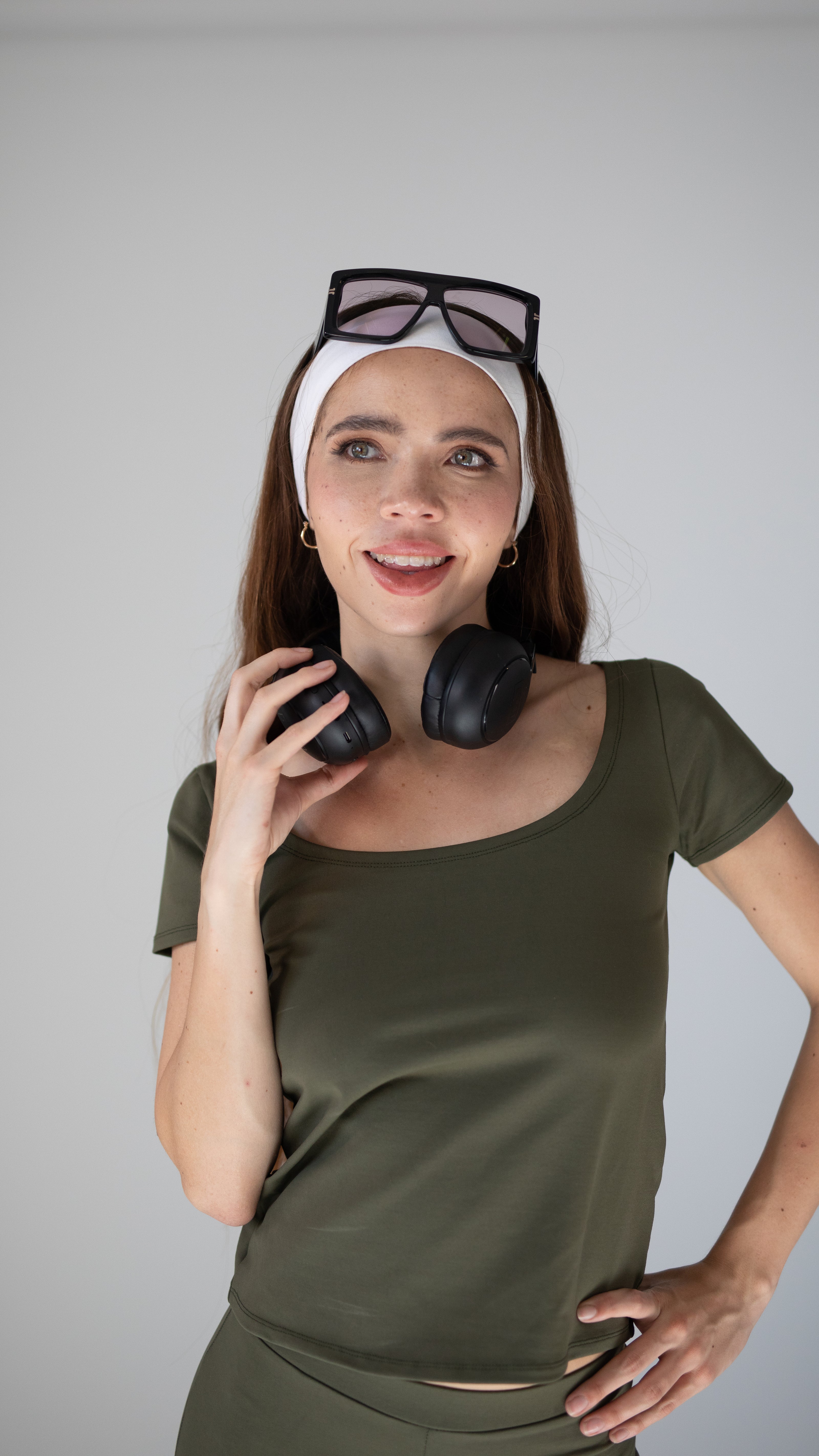 Wear it casually with the matching flared leggings for a monochrome, sporty look that’s perfect for yoga, running errands, or relaxed weekends. Its breathable fabric keeps you cool and comfortable all day.